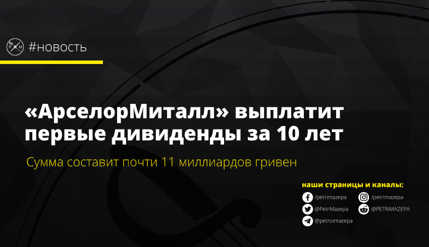 Крупнейшее металлургическое предприятие Украины «АрселорМиталл Кривой Рог» впервые с 2007 года выплатит дивиденды своим акционерам. Общая сумма дивидендов составит 10,845 миллиардов гривен.