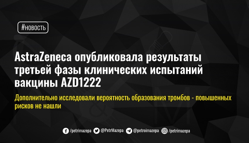 AstraZeneca опубликовала результаты третьей фазы клинических испытаний вакцины AZD1222