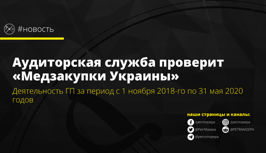 В пресс-службк госпредприятия рассказали о получении сообщения от Государственной аудиторской службы Украины, что с 25 мая на ГП «Медзакупки Украины» придет ревизионная группа. Ревизия продлится по 7 июля.