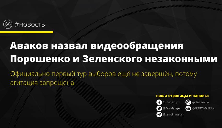 Глава МВД Украины Арсен Аваков убеждён, что обмен видеороликами о дебатах кандидатов на пост главы государства является незаконным. Согласно его мнению, действия президента Петра Порошенко и его оппонента Владимира Зеленского нарушают избирательное законодательство.