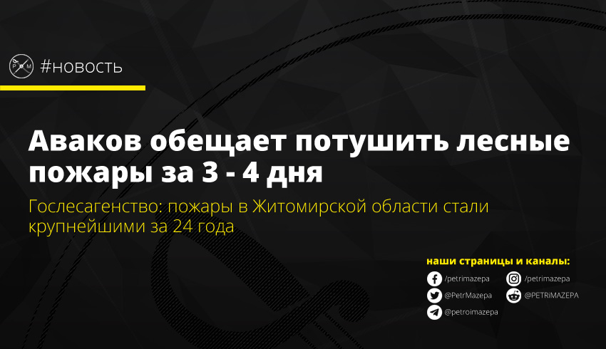 Заблоцкий сообщил, что он вместе с руководителем ОПУ Андреем Ермаком, министром внутренних дел Украины Арсеном Аваковым и секретарем СНБО Алексеем Даниловым совершили облет лесов Житомирской области. Аваков пообещал за 3-4 дня погасить все очаги.