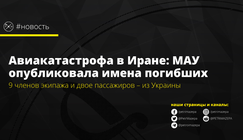 Авиакатастрофа в Иране: МАУ опубликовала имена погибших