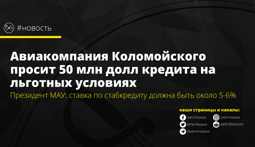Компания МАУ, которая принадлежит Игорю Коломойскому, просит, чтобы государство выдало ей стабилизационный кредит на сумму около 50 млн долл под льготные 5 - 6% годовых, чтобы преодолеть кризис, спровоцированный ограничительными мероприятиями на фоне распространения коронавируса нового типа.