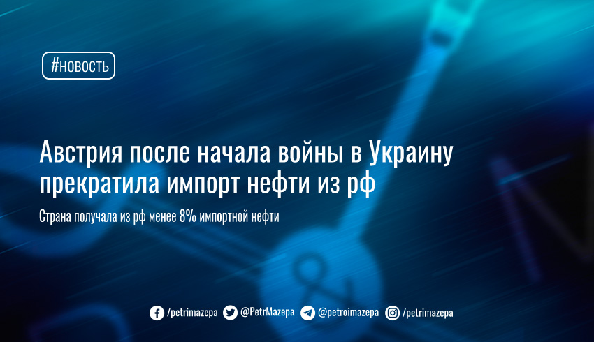 Австрия после начала полномасштабной российско-украинской войны прекратила импорт и переработку нефти из рф.