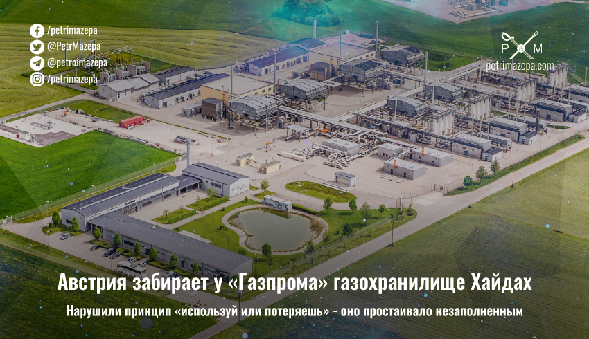 Австрия реализует принцип «используй или потеряешь» и забирает у российского «Газпрома» (GAZP.MM) крупное подземное хранилище газа (ПХГ) Хайдах (Haidach) из-за систематического незаполнения части его мощностей.