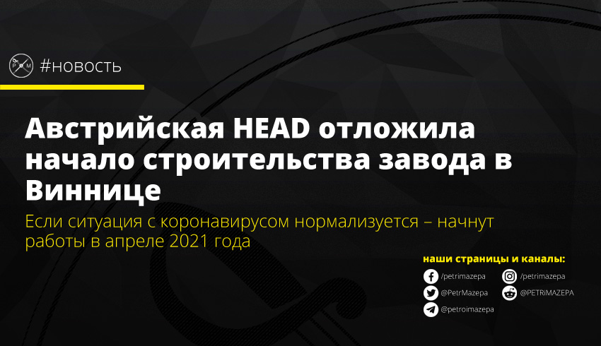 Австрийская компания Head International Holding GmbH (HEAD) отложила старт строительства завода по производству снаряжения для зимних видов спорта в Виннице на 2021 год. Причиной такого решения названы коронавирус и ограничения, для борьбы с распространением пандемии.