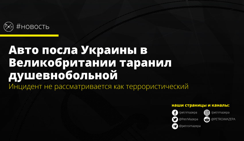 Водитель, дважды намеренно протаранивший автомобиль посла Украины в Великобритании Натальи Гарибаленко, является психически больным и будет препровожден в больницу для лечения. Полиция Лондона не рассматривает данный инцидент как террористический.
