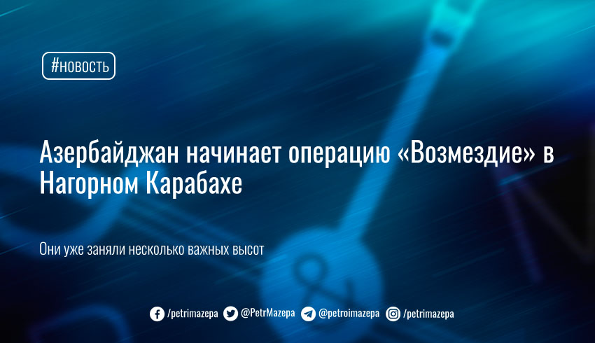 Министерство обороны Азербайджана заявило о начале операции «Возмездие» в Нагорном Карабахе — они взяли под контроль несколько важных высот и уже занимаются оборудованием новых позиций.