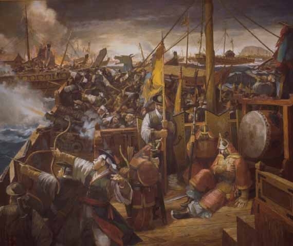 Китайцы, кстати, впервые решились собрать свои военно-морские силы, которые до этого лишь охраняли китайские воды, и послать в помощь Корее под командованием адмирала Чен Лина.