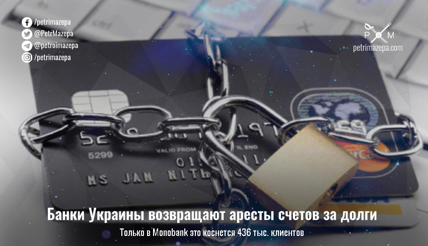 Об этом сообщил соучредитель Monobank Олег Гороховский. «Поскольку закон вступил в силу, мы должны вернуть аресты, которые снимали на время действия военного положения. Это коснется ~436 тысяч наших клиентов. Очень жаль, но мы ничего не можем с этим сделать. Все банки его будут выполнять», — пояснил он.