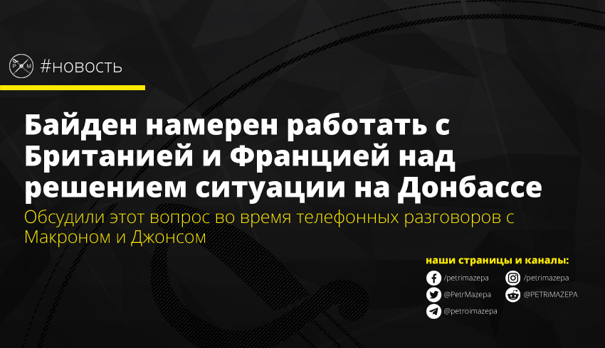 По данным «Интерфакс-Украина», Байден поднимал эту тему во время разговоров с президентом Франции Эмманюэлем Макроном и с премьером Великобритании Борисом Джонсоном.