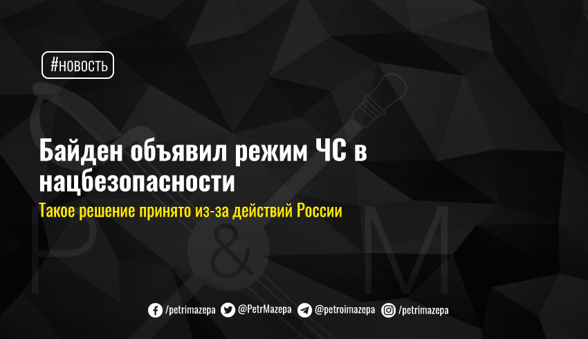 Белый дом опубликовал обращение Байдена к Конгрессу по этому поводу. Президент уведомил Конгресс о том, что издал указ об объявлении режима ЧС из-за действий России против внешней политики и экономики США.