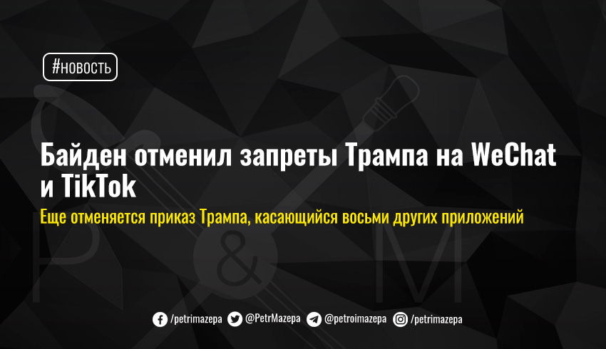 Президент США Джо Байден отозвал серию распоряжений своего предшественника Дональда Трампа о запрете новых загрузок китайских приложений WeChat и TikTok.