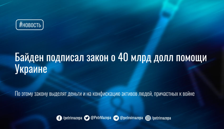 Президент США Джо Байден подписал законопроект о выделении Украине 40 млрд долларов помощи (H.R. 7691).