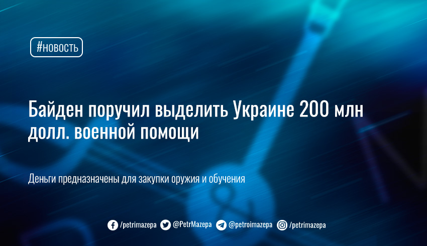 Президент США Джо Байден распорядился выделить 200 миллионов долларов на военную помощь Украине.