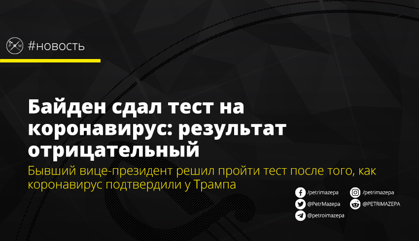 Кандидат в президенты США, бывший вице-президент Джо Байден получил результат теста на коронавирус: результат отрицательный.
