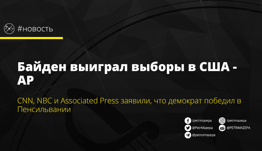 Агентство указывает, что это его прогноз и основан он на том, что Байден выиграл у республиканца. действующего президента Дональда Трампа, в штате Пенсильвания.