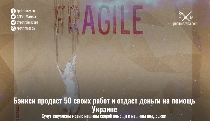 Всемирно известный британский уличный художник Бэнкси создал 50 рисунков-трафаретов, выставил их на продажу через сайт благотворительного фонда, все вырученные деньги пойдут на помощь для Украины.