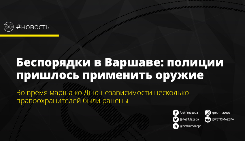 Во время марша ко Дню независимости Польши в Варшаве несколько правоохранителей из-за массовых беспорядков получили ранения.