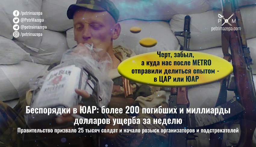 «События прошлой недели были не чем иным, как преднамеренным, скоординированным и хорошо спланированным нападением на нашу демократию… Эти действия направлены на то, чтобы нанести вред экономике, вызвать социальную нестабильность и серьезно ослабить - или даже сместить - демократическое государство», - заявил Рамафоса.