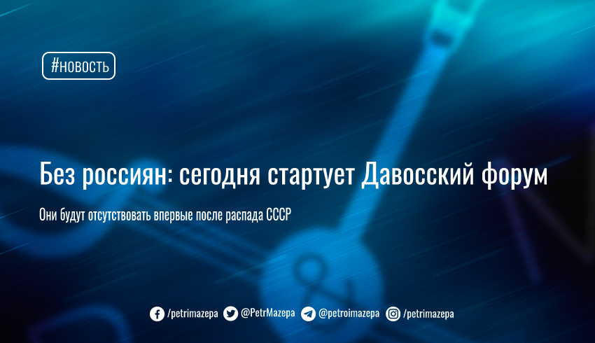 В воскресенье, 22 мая, начинается Всемирный экономический форум в Давосе, на котором впервые после падения СССР не будет ни российских олигархов или бизнесменов, ни чиновников. В этом году россия будет фигурировать на встрече в совершенно ином контексте — минимизации торговли с ней и последствий развязанной ею войны.