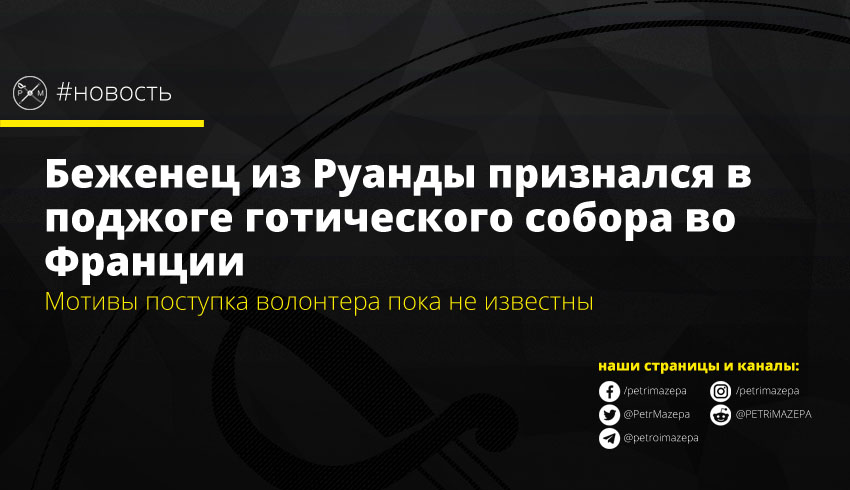 Беженец из Руанды, волонтер из собора в Нанте, признался в поджоге старинного здания. Мотивы его поступка пока что не известны. Как сообщила защита подозреваемого, он раскаивается и сотрудничал со следствием.