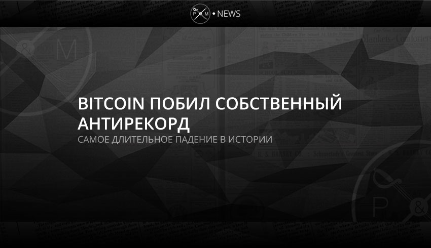 Криптовалюта Bitcoin побила свой собственный антирекорд, официально вступив в самый длительный период падения цен за 10 лет своего существования.