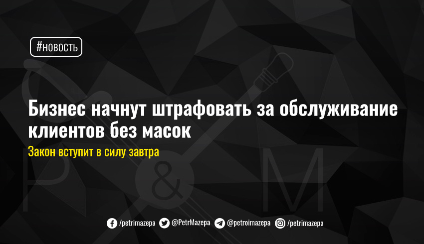 За обслуживание потребителей без масок или респираторов бизнес должен заплатить штраф в том же размере.