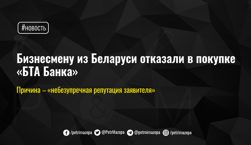 Бизнесмену из Беларуси отказали в покупке «БТА Банка»
