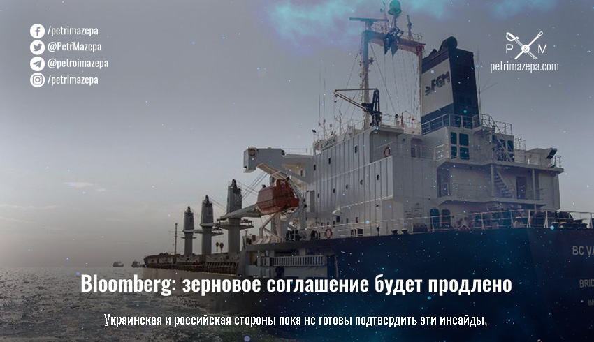 Как пишет Bloomberg со ссылкой на данные турецких чиновников, зерновое соглашение, позволяющее Украине экспортировать зерновые из ключевых портов через Черное море, будет продлено. И россия согласилась пока оставаться в пакте. Но и украинская сторона, и российская, пока отвечают, что комментировать результаты переговоров еще рано.
