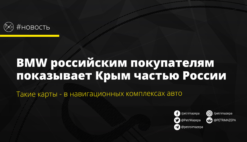 В навигационных комплексах автомобилей BMW, продающихся в России, появилась возможность установить карту, на которой оккупированный Крым показан частью России.
