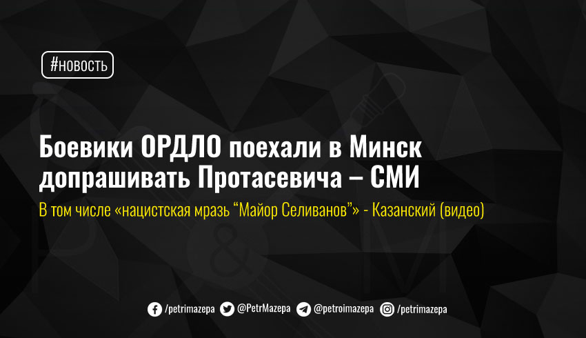 Боевики незаконного вооруженного формирования «ЛНР» по заявлениям местных СМИ направились в Минск допрашивать задержанного оппозиционного журналиста Беларуси Романа Протасевича. В том числе «нацистская мразь», известный как «майор Селиванов». Ранее этот персонаж вел на местном телевидении оккупированных территорий программы, посвященные ненависти к Украине и оскорблениям украинской нации.