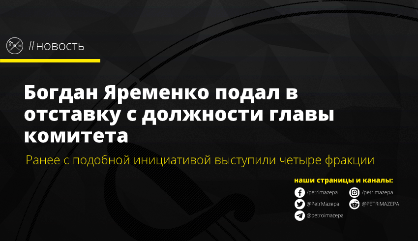 Богдан Яременко подал в отставку с должности главы комитета