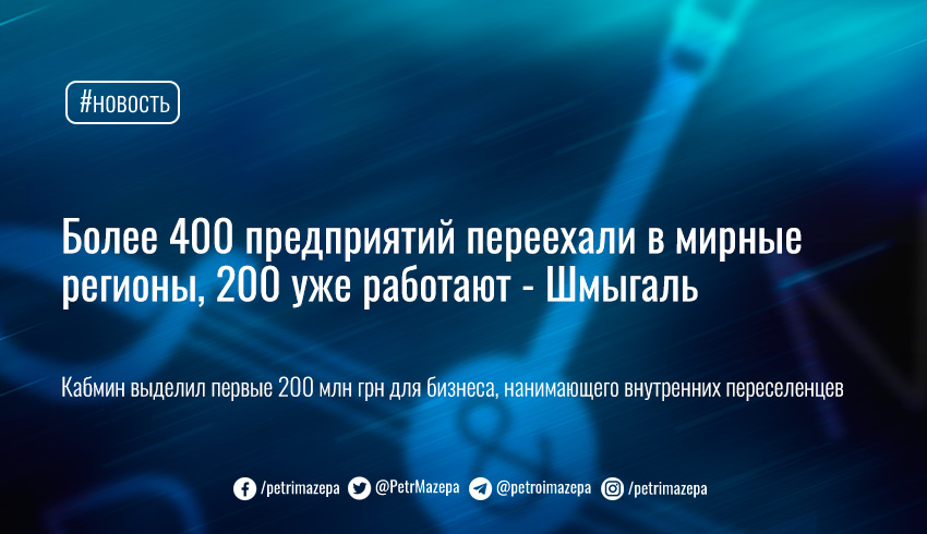 Более 400 предприятий переехали в мирные регионы, 200 уже работают - Шмыгаль