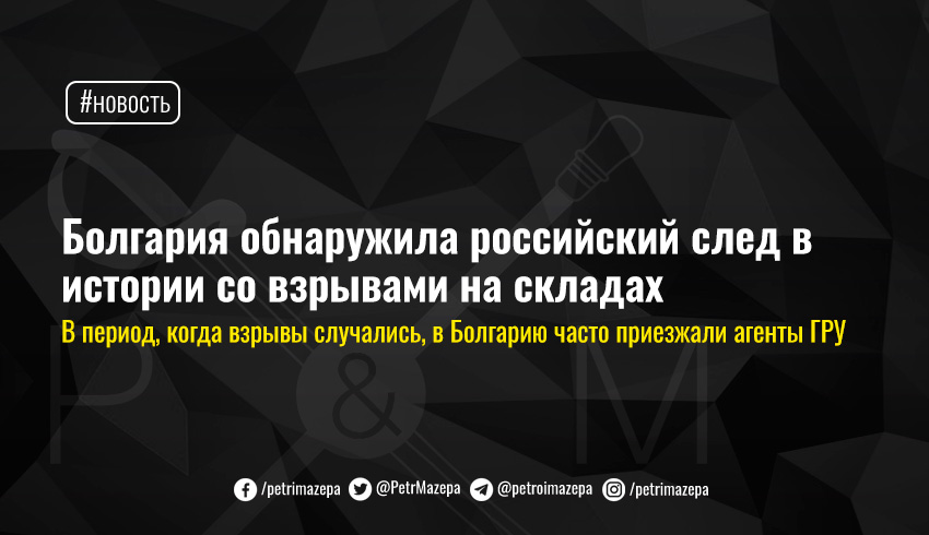 Как сообщает Radio Free Europe, один из бывших министров обороны Болгарии призвал возобновить расследование причин этих взрывов. Такое решение была принято после разоблачения российского следа во взрывах на складе боеприпасов в Чехии в 2014 году.
