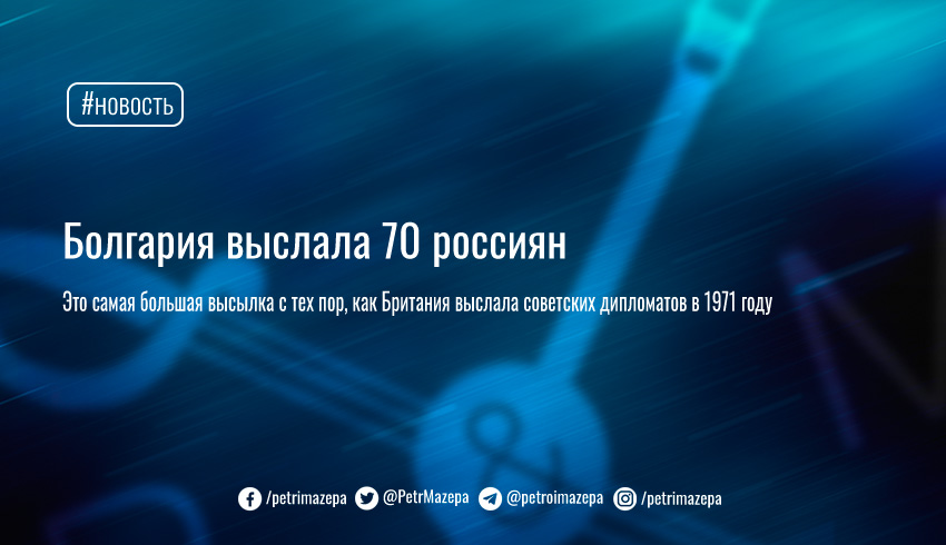 В прошлый четверг Болгария объявила персонами нон грата 70 россиян, что стало самой большой высылкой с тех пор, как Великобритания выслала 105 советских дипломатов во время холодной войны в 1971 году, сообщает Euractiv. Не все 70 высланных являются дипломатами, некоторые из них являются техническим персоналом, таким как повара, водители или садовники.