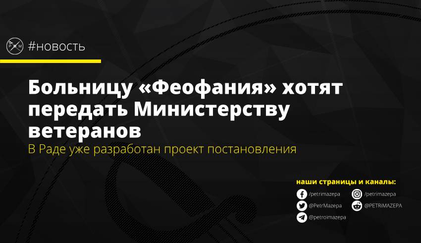 Профильный комитет Верховной Рады предложил передать Клиническую больницу «Феофания» в управление управления Министерства по делам ветеранов Украины. «Комитет предложил передать Клиническую больницу "Феофания" Государственного управления делами в сферу управления Министерства по делам ветеранов Украины», - говорится в сообщении.