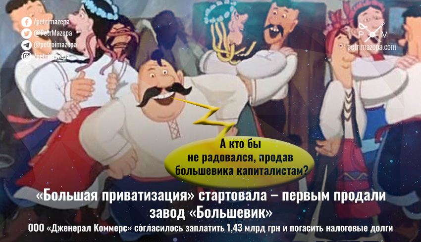 Бывший завод «Большевик» продали. ООО «Дженерал Коммерс» приобрело актив за 1,429 млрд 17 тыс. грн. при стартовой цена объекта в 1,389 млрд грн. Но премьер-министр Денис Шмыгаль заявляет, что государство получит от этой продажи около 2 млрд грн.