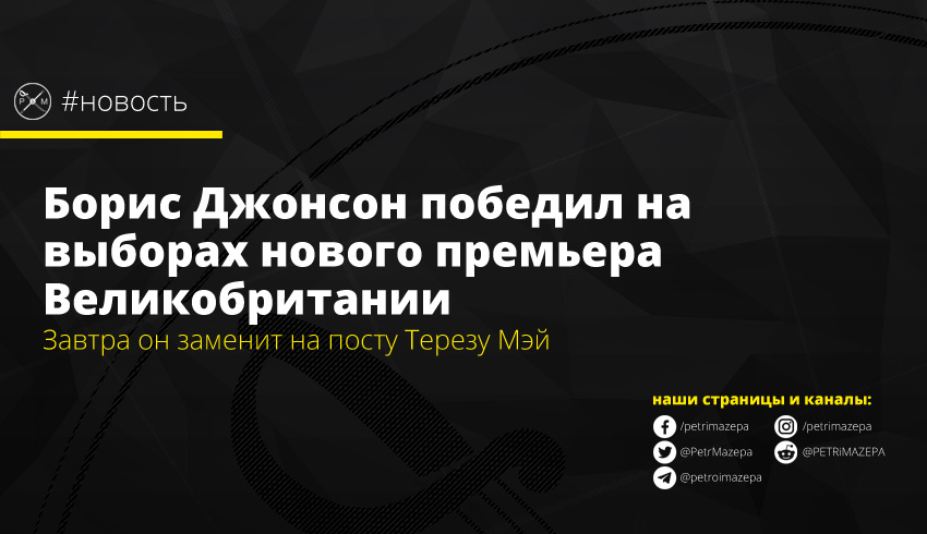Борис Джонсон одержал победу на выборах лидера Консервативной партии Великобритании и станет новым премьер-министром страны. За него отдали свои голоса 92 153 членов партии, в то время как его оппонент получил 46 656 голосов. Уже завтра он заменит на посту Терезу Мэй.