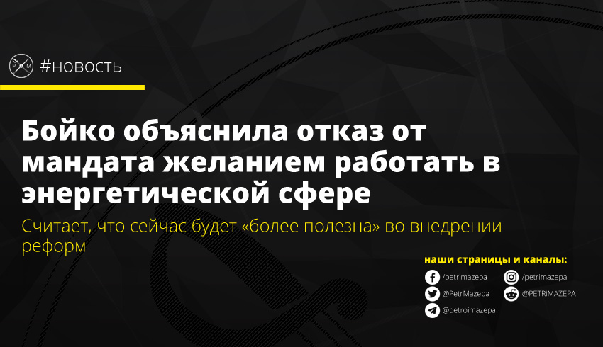 Бойко объяснила отказ от мандата желанием работать в энергетической сфере