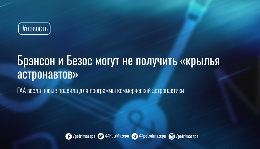 Миллиардеры Джефф Безос и Ричард Брэнсон могут не соответствовать требованиям, по которым в США определяют астронавтов. 20 июля 2021 года Федеральное авиационное управление (FAA) ввел новые правила для программы коммерческой астронавтики 20 июля 2021 года.