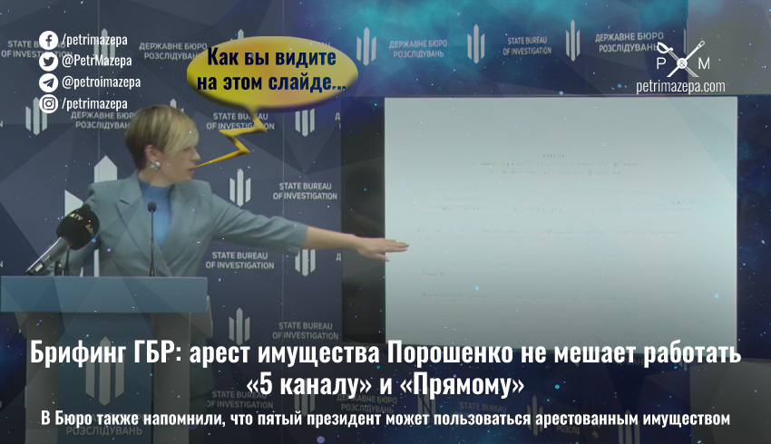 Брифинг ГБР: арест имущества Порошенко не мешает работать «5 каналу» и «Прямому»
