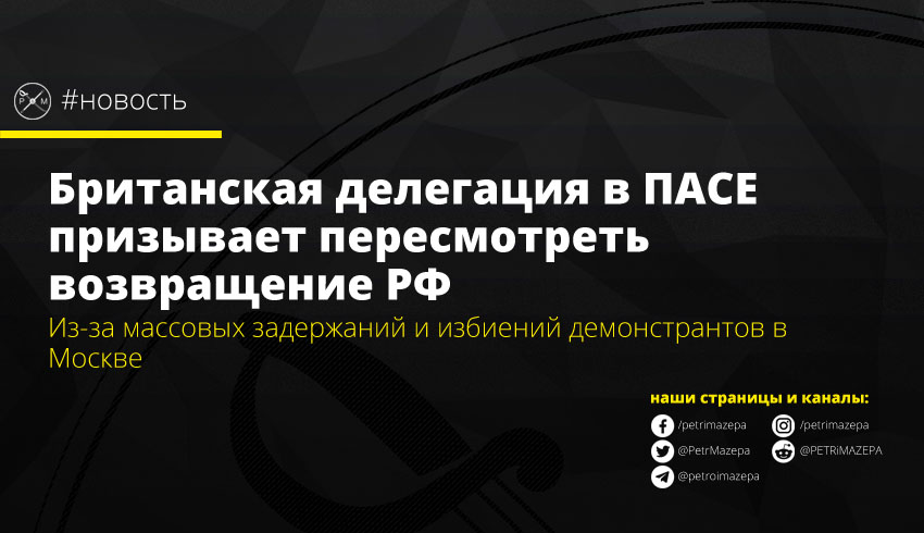 Глава делегации Великобритании в ПАСЕ Роджер Гейл призвал к пересмотру возвращения российской делегации в Парламентскую ассамблею Европы из-за массовых задержаний и жестокости полицейских во время демонстрации в Москве.
