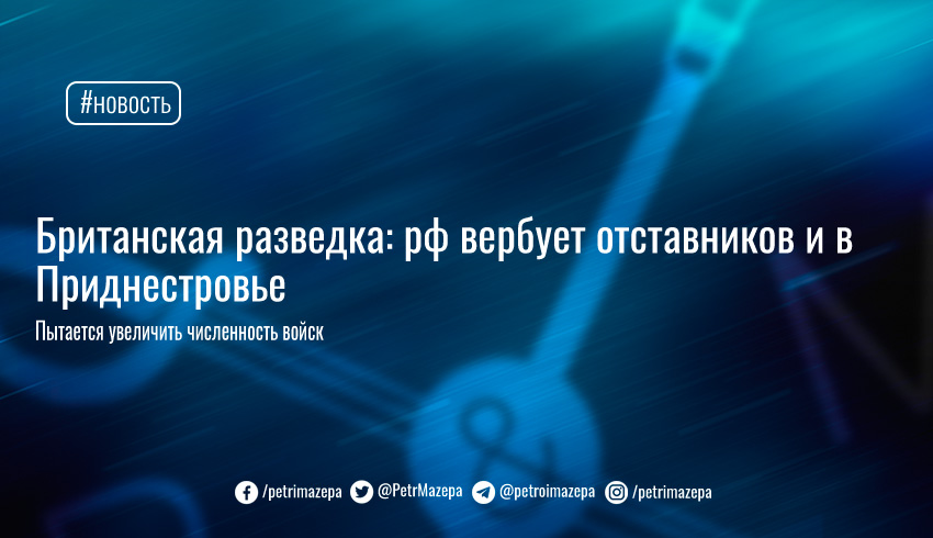 По данным британской разведки, из-за потерь рф пытается увеличить численность войск с помощью личного состава, который был уволен с военной службы с 2012 года, сообщает Минобороны Великобритании в Twitter. Кроме того, россия пытается вербовать людей в Приднестровье, передает британская разведка.