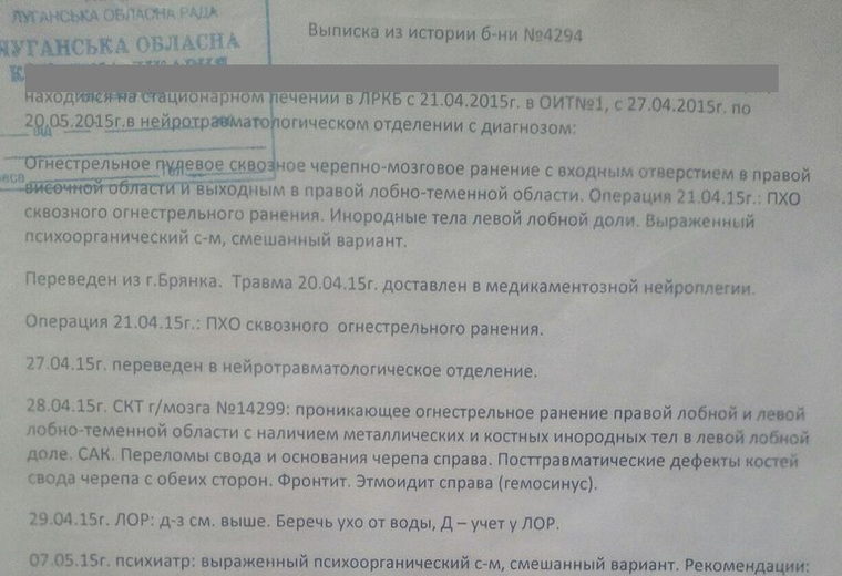 Когда приехали в больницу, его уже забрали на операцию: почистили череп и сказали, что он умрет. Я стала просить комбата отвезти Женю в Луганск, он стал делать вид, что звонит, но в итоге развернулся и уехал. Через знакомых я дозвонились до женщины в министерстве здравоохранения, и за нами прислали реанимобиль. В Луганск приехали в полпервого ночи. Там у врачей тоже особо надежд не было: все это время он был без сознания. Я умоляла, они сделали повторную операцию, после которой он еще три дня пролежал в коме.