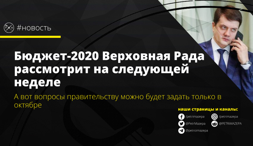 На текущей сессии рассмотрение Закона «О Государственном бюджете Украины на 2020 год» планируется на следующей пленарной неделе (17-20 сентября). Разумков отметил, что «повестка дня второй сессии Верховной Рады будет дополняться», сообщает пресс-служба ВР. Дополниться она сможет некоторыми из 36 вопросов, которые будут обработаны Комитетами ВР на этой неделе.