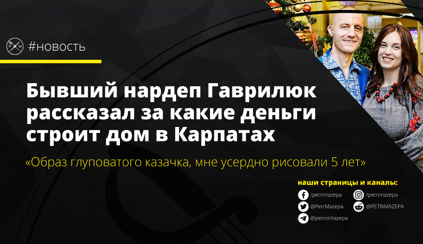 В своем посту на Facebook Гаврилюк пишет, что «СМИ часто выставляли меня тупым в своих сюжетах», но теперь прыгнули выше головы. Так он прокомментировал информацию о том, что строит «трехэтажный дом в живописных Карпатах, на прекрасном большом участке возле водопада, не внеся в декларацию данные о средствах, на которые я должен был все это приобрести и построить. То есть в декларации я притворяюсь бедным и одновременно строю дом в селе, где все друг друга знают».