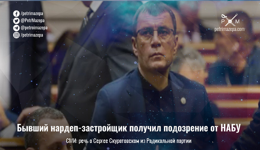 На сайте НАБУ и в сообщении САП сообщается, что подозреваемый возглавлял один из комитетов парламента, а до этого был депутатом Киевского областного совета. Это, а также обстоятельства дела, указывает на Сергея Скуратовского из Радикальной партии, передает Liga.net.