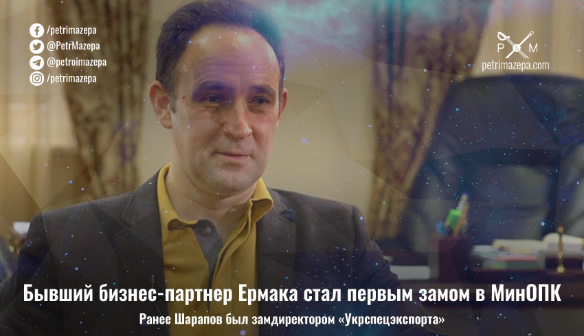 Новоназначенный заместитель министра пришел во власть одновременно с Ермаком. Когда того осенью 2019 году назначили в набсовет «Укроборонпрома», Шарапов стал заместителем гендиректора «Укрспецэкспорта».