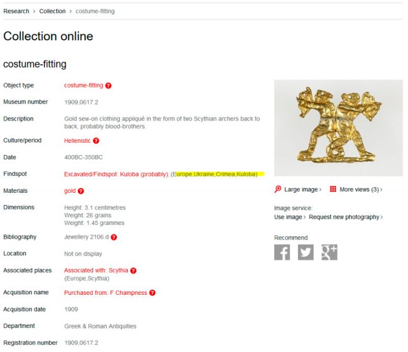 В каталозі Британського музею ця прикраса з лучниками з докладною атрибуцією. А на виставці та у статті вже такого підпису немає.